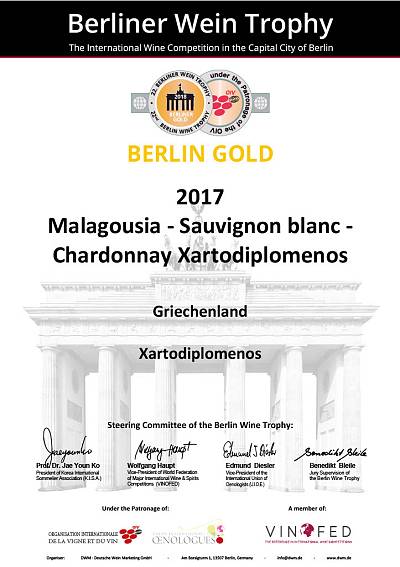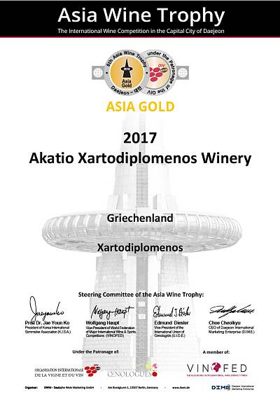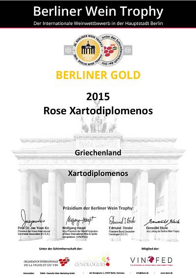 Τα προϊόντα μας έχουν βραβευτεί αρκετές φορές από αξιόπιστους διεθνείς οργανισμούς τόσο στην Ευρώπη όσο και στην Ασία. Παραθέτουμε τις βραβεύσεις αυτές για το κάθε ένα από τα κρασιά μας. Μπορείτε να επιλέξετε το βραβείο που επιθυμείτε για μεγέθυνση.